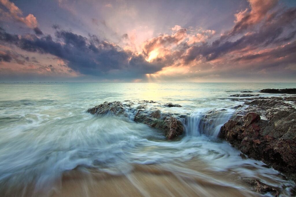 Hvis du har stativ, kan du bruge lang lukkertid. Det gør vandet blødt, skyerne slørede og billederne mere drømmende. Uden stativ skal du holde lukkertiden kort (fx 1/125) for at undgå rystelser.
